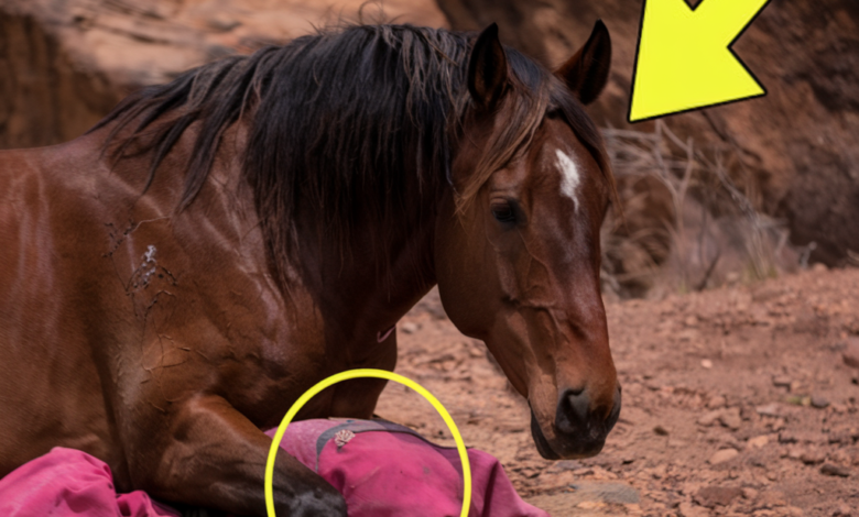 Moving slowly, Elena spoke to him in a low, soothing voice. “Easy, boy. We’re not here to hurt you.” Her calm tone seemed to earn his brief trust. Then, with a painful effort, the stallion shifted his weight and lifted his torso slightly. What Elena saw beneath him made her freeze in disbelief.