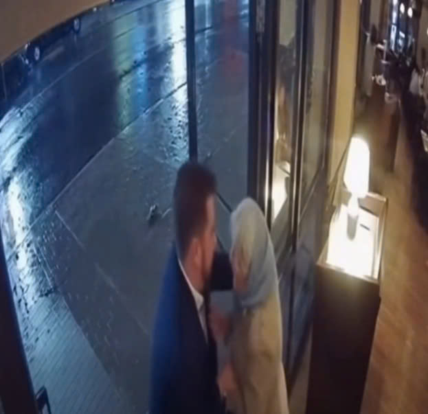 As she stepped toward the door, the café’s porter stopped her abruptly. He glanced at her from top to bottom, his expression shifting into something dismissive.