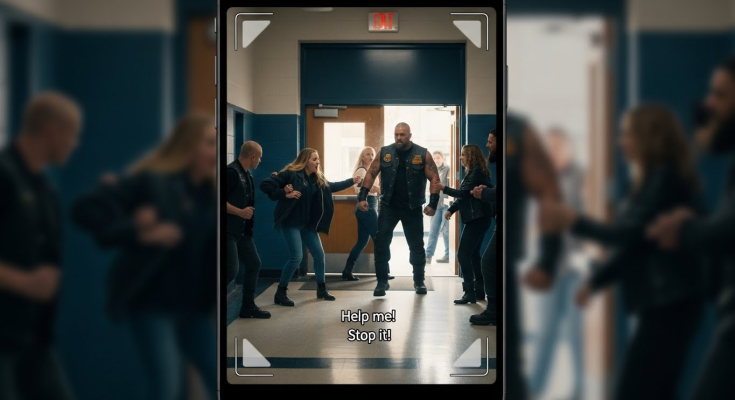 The hallway scene stopped my breath. A group of students stood laughing, phones raised, while one boy dragged a girl across the floor with a jacket covering her head. I recognized her shoes instantly. Lily’s voice trembled as she begged for help. She reached toward an adult nearby—the vice principal—who pulled her skirt away and told her to stop causing a disturbance. She turned her back. That moment burned into me. The laughter stopped when I stepped forward. The boy dropped the jacket, his confidence draining as he noticed the men filling the hallway behind me.