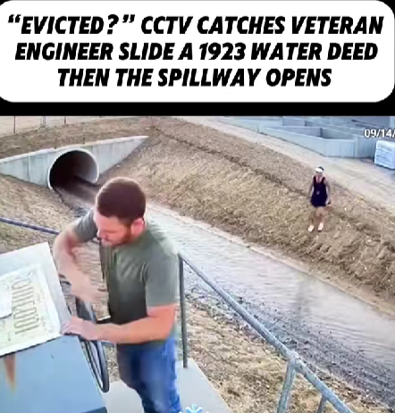 The video begins quietly. A man approaches a restricted area near a spillway, moving with steady confidence and no visible hesitation. He does not rush or appear alarmed. According to captions added later, he is identified as a veteran engineer. In his hands, he carries a document that viewers are told is a historic water deed dated back to 1923. The environment around him seems routine: concrete walls, controlled channels, and water flowing steadily in the background.